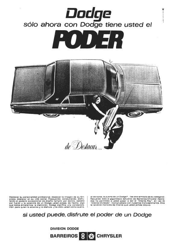 Las campañas publicitarias de Barreiros siempre se caracterizaron por ser rompedoras, y el caso de este modelo no es una excepción: en su momento a estos coches se le llamó “Dodge Poder” porque su publicidad ponía de relieve que se trataba de coches poderosos en términos de potencia pero, ante todo, que quien lo conducía ostentaba poder económico y eso en este país tan pendiente de la opinión del prójimo como el nuestro al fin y al cabo era otro argumento de venta más.