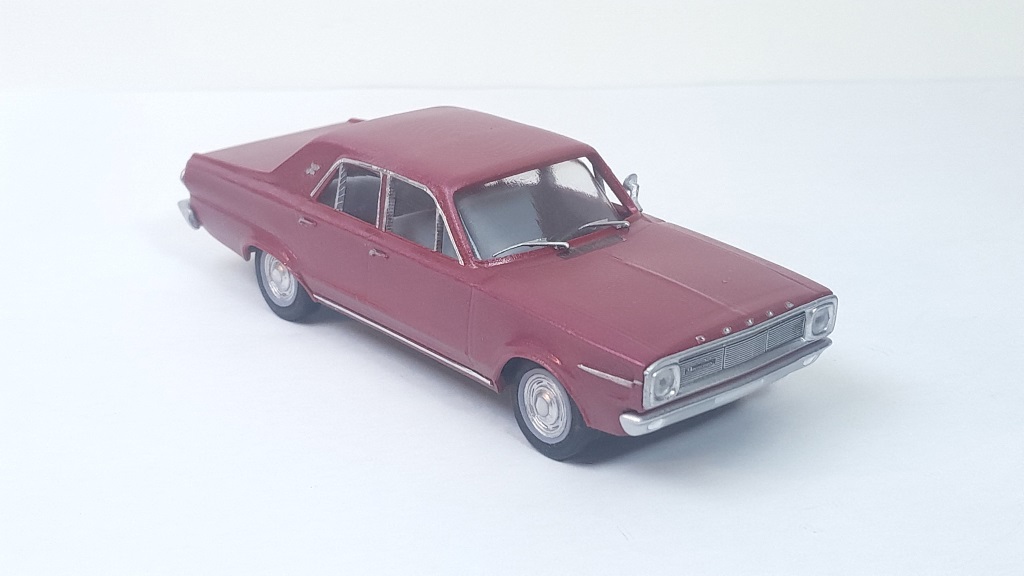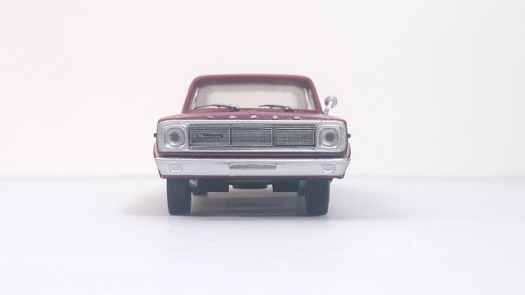 El modelo que reproduzco en esta entrada es el Dodge Dart 1966, una actualización del modelo original de 1965. Las diferencias respecto al anterior eran básicamente estéticas, montando una calandra diferente, de líneas más cuadradas, faros empotrados sobre marco cuadrado, un tablero renovado con lineas rectas y relojes rectangulares en lugar de los clásicos redondos del modelo precedente, y el ligero cambio de molduras, desapareciendo las laterales.