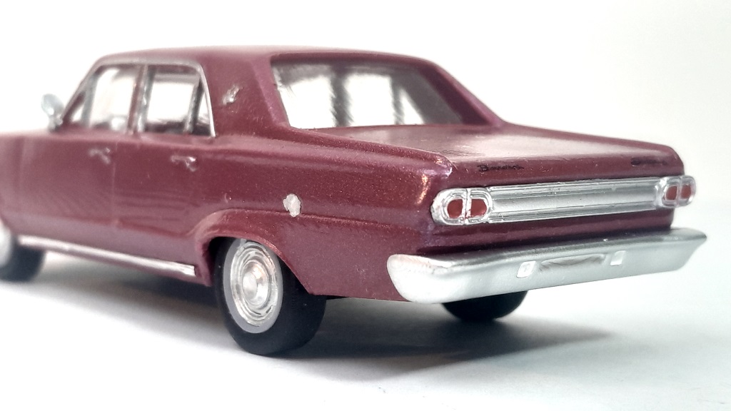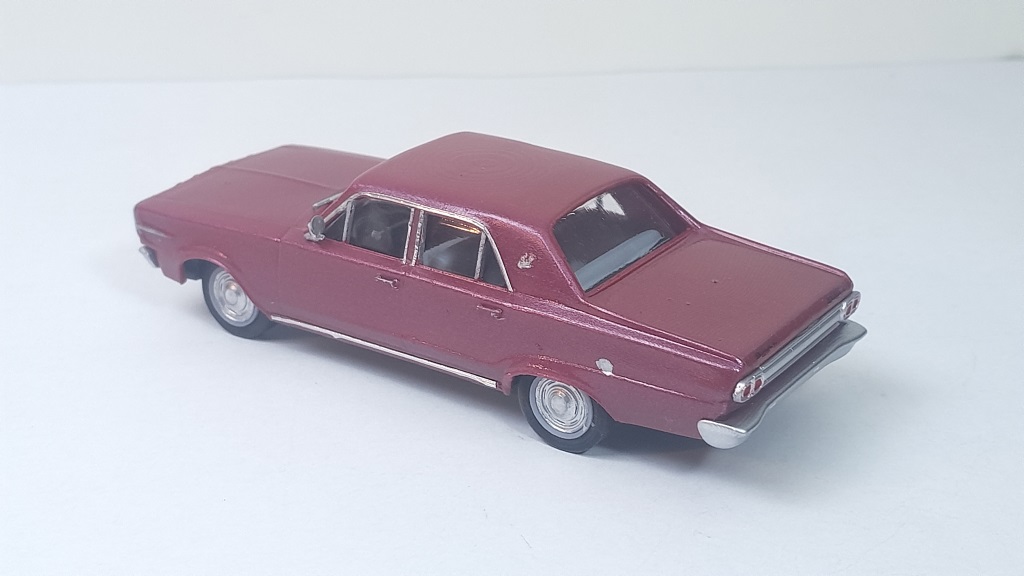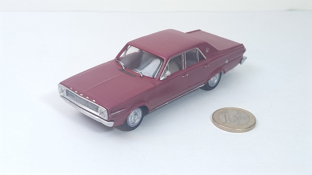 Para acabar la entrada, muestro diferentes fotos de mi modelo a escala 1:43 del Dodge Dart , que representa al GL de 1966 en color granate. Es la segunda versión de este modelo mostrado en este Blog desde Diciembre de 2023 pero de diseño y ejecución más esmerados.